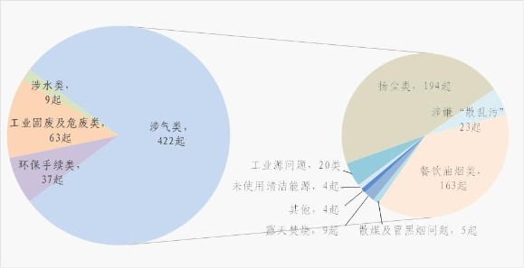 左:第二轮点穴式执法发现环境违法问题;右:涉大气类环境违法问题具体类型